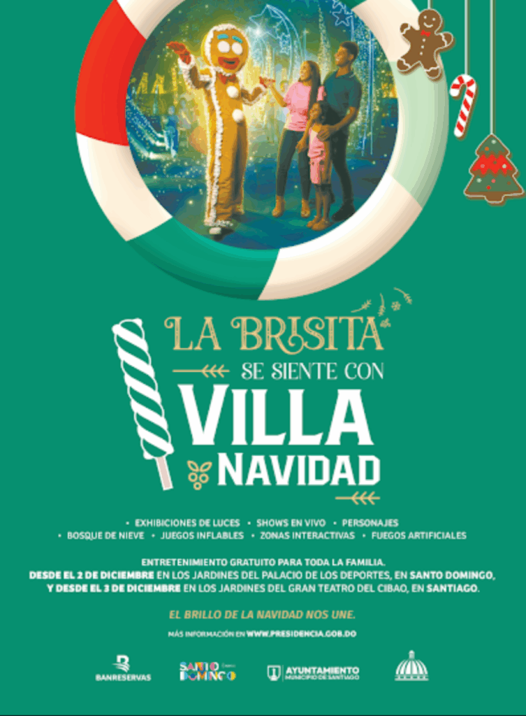Raquel Peña, Villa Navidad Santiago, encendido de luces, Gran Teatro del Cibao, Navidad RD, Brisita Navideña, Banco de Reservas, actividades navideñas, parque navideño Santiago, atracciones familiares, Santiago de los Caballeros,