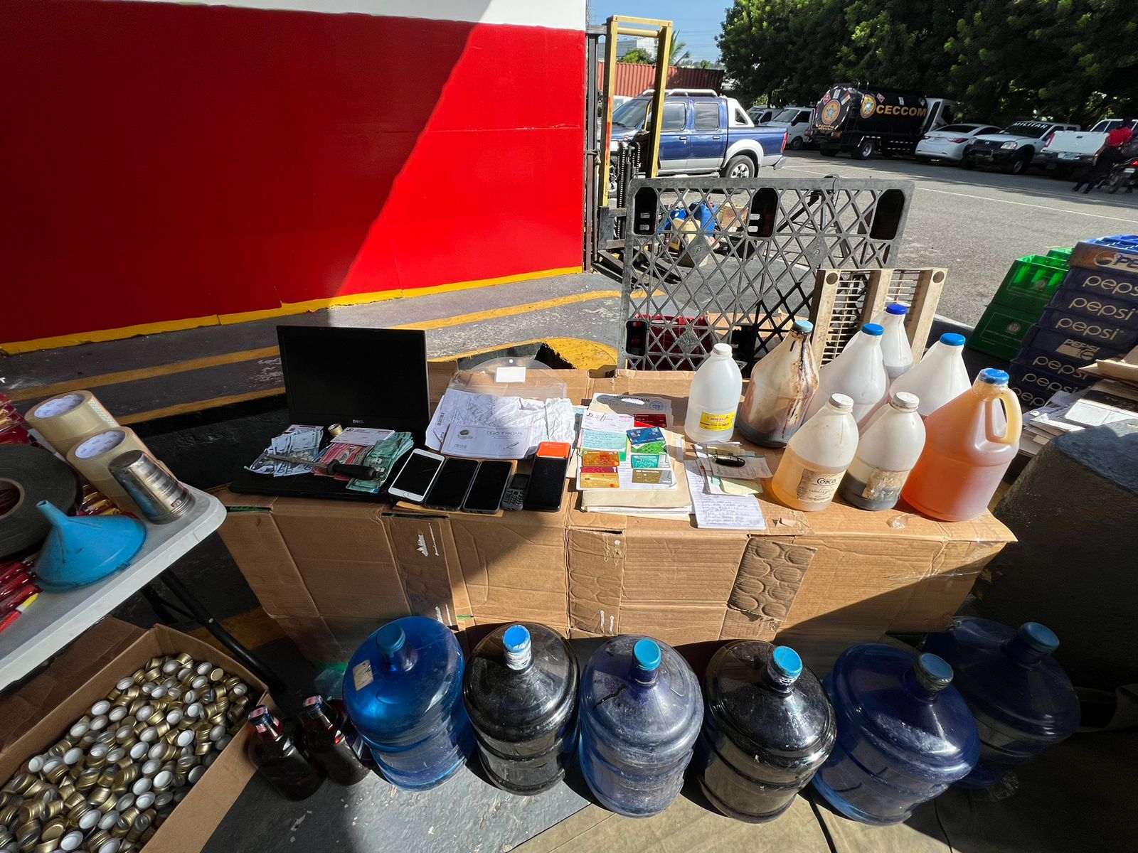 Santiago de los Caballeros, RD.- El Cuerpo Especializado de Control de Combustibles y Mercancías (CECCOM) decomisó una gran cantidad de alcohol adulterado y mercancía ilegal durante un operativo de allanamiento en respuesta a denuncias ciudadanas en Santiago de los Caballeros.
