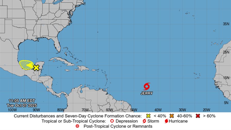 Los meteorólogos del NHC, con sede en Miami, prevén un fortalecimiento constante y estiman que Jerry podría convertirse en huracán en uno o dos días.