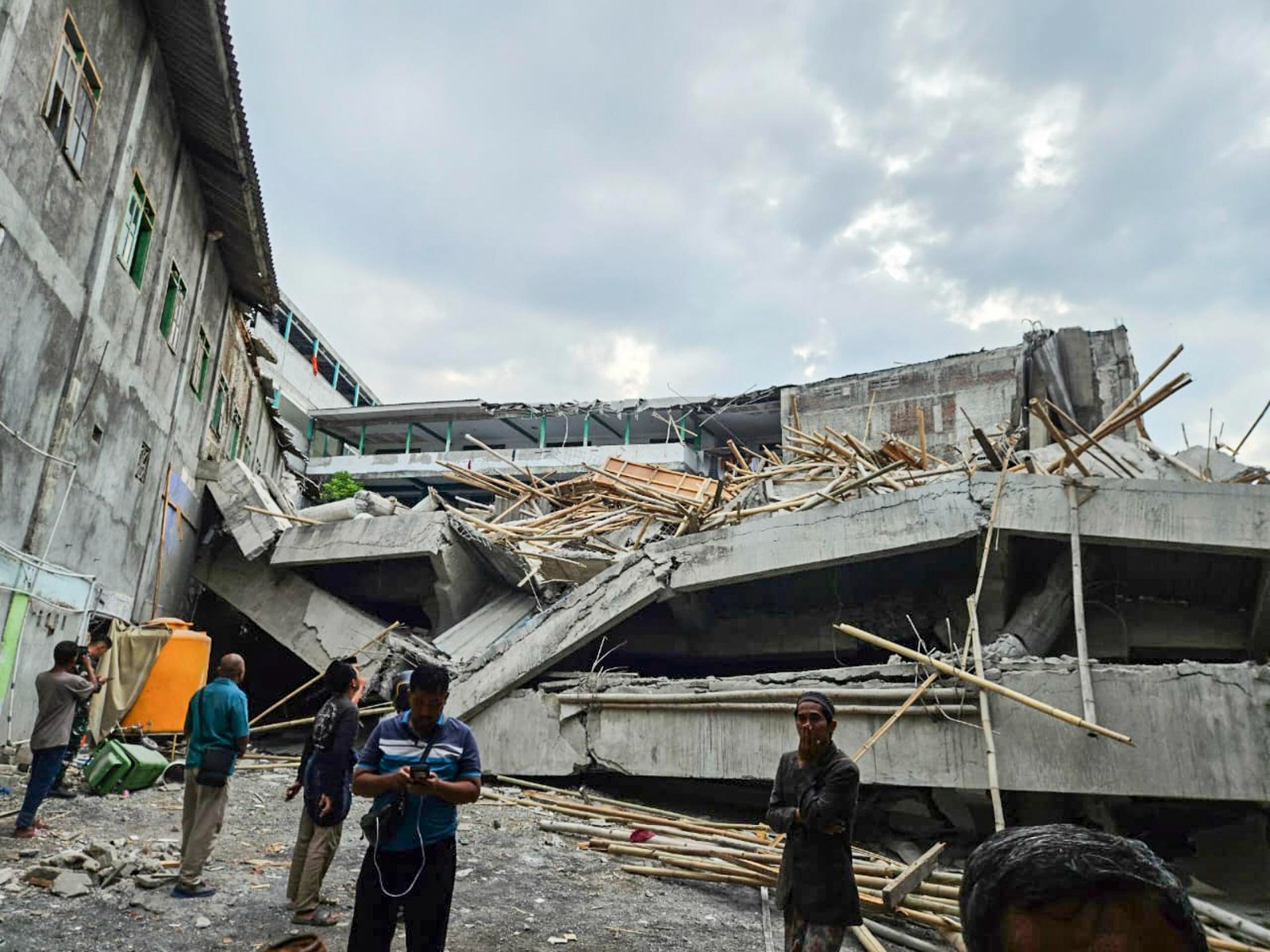 Autoridades reportan un número incierto de víctimas en el colapso del edificio en Java Oriental