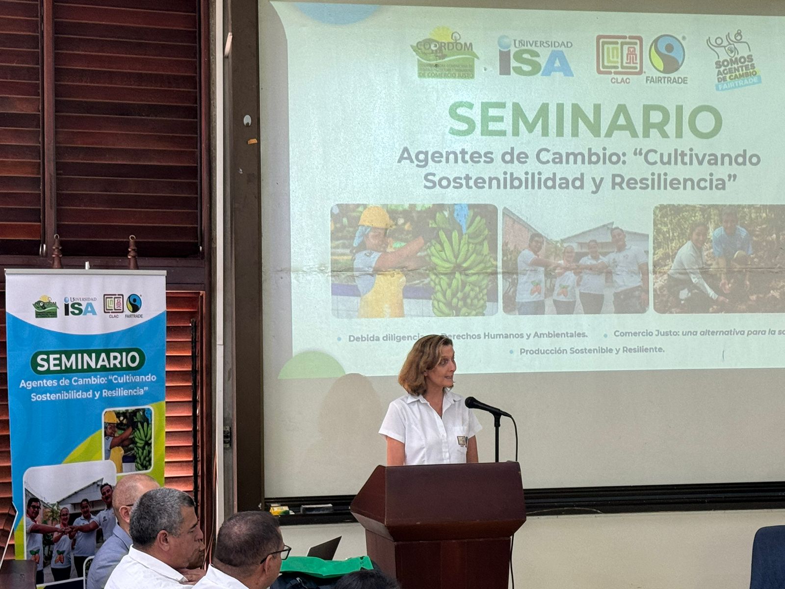 Santiago de los Caballeros, 15 de mayo de 2025. – La Universidad ISA y la Coordinadora Latinoamericana y del Caribe de Pequeños Productores y Trabajadores de Comercio Justo (CLAC) desarrollaron el seminario “Agentes de Cambio: Cultivando Sostenibilidad y Resiliencia”, en el marco del Mes del Comercio Justo.